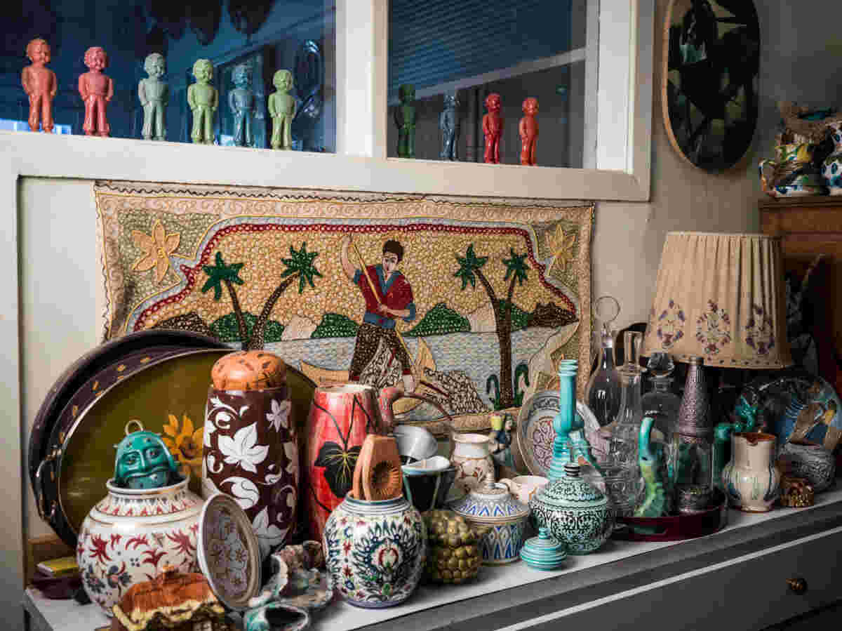 Raised embroidery depicting a boatman fighting against two crocodiles in the Nile.